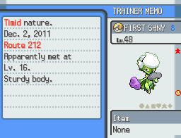 When I was 8 years old I got my very first Pokemon game, Pokemon Pearl. I had religiously played through all of Gen 3 prior, borrowing cartridges from friends who had older siblings. After I got my own copies of D/P/Pt and HG/SS I played THOSE religiously. One day I came across shiny hunting on YouTube, and learned that by resetting thousands of times there was a chance the Pokemon could be shiny. I never ended up finishing my first hunt, which was Lugia, but I eventually took up Pokeradar instead, after learning that the chances of finding a shiny were better. I ended up finding my very first shiny, a Budew appropriately named FIRST SHNY, and have been pretty hooked on shiny hunting ever since.